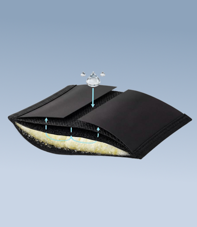 Multi-layer core absorbs 70ml.